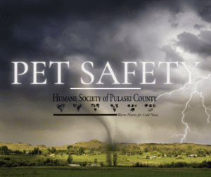 For tornadoes, place pets in their carriers or on leashes before moving to your shelter area. Never leave pets tied up or outside during severe weather.